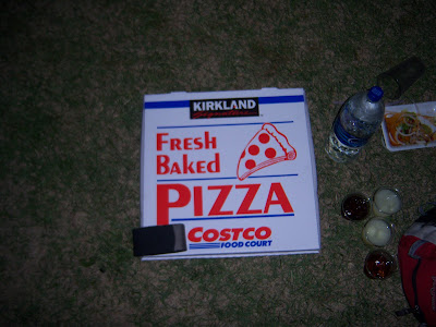 Our massive pizza. That is my camera case at bottom left.